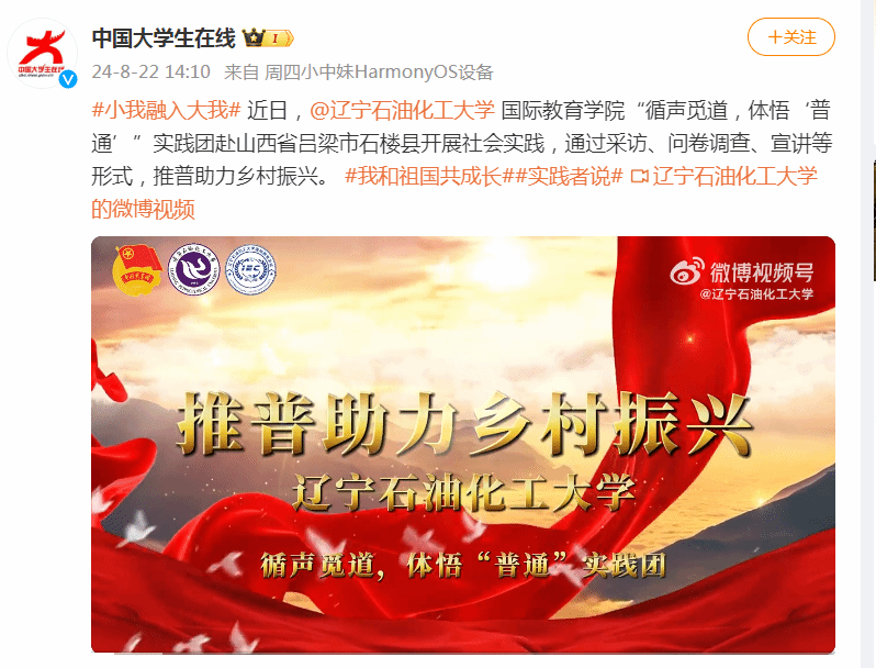 编者按:8月22日,教育部中国大学生在线官方微博、教育部中国大学生在线网站对我校国际教育学院“循声觅道,体悟‘普通’”实践团赴山西省吕梁市石楼县开展社会实践进行了宣传报道。现将相关报道转载如下: