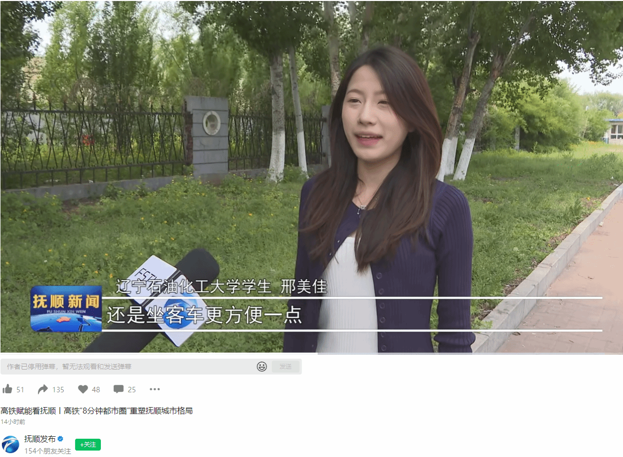 编者按:随着沈佳高铁沈白段通车的脚步日益临近,抚顺与沈阳的时空距离将被压缩至8分钟。这条“东北东部大动脉”不仅是钢铁轨道的延伸,更是引领抚顺深入深度融入沈阳现代化都市圈、东北振兴发展大局的关键纽带,为我市转型升级注入澎湃动能。抚顺的红河谷漂流、赫图阿拉城,即将与沈阳故宫、棋盘山形成“一日游”无缝衔接,高铁带来的“同城效应”正悄然改写着两地市民的生活图景。抚顺电视台对我校家住沈阳的邢美佳同学进行了采访,她谈到了抚顺、沈阳两地通行的快速便捷和大学生活的丰富多彩。现将相关报道转载如下: